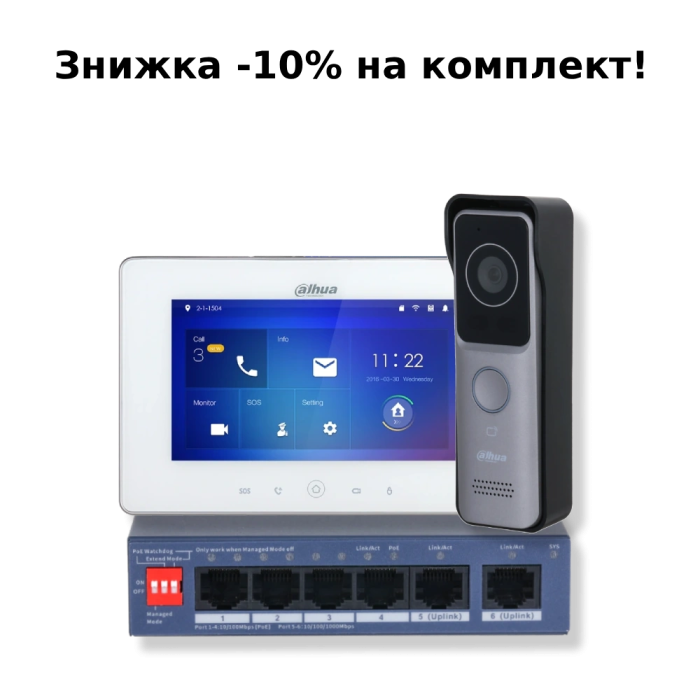 Придбання комплекту - це додаткова вигода в 10% порівняно з придбанням елементів комплекту окремо! Склад:- DHI-VTO2311R-WP- DHI-VTH5221DW-S2- DH-CS4006-4ET2GT-36