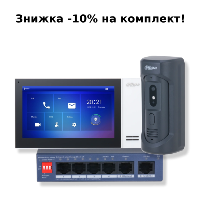 Придбання комплекту - це додаткова вигода в 10% порівняно з придбанням елементів комплекту окремо!Склад:- DHI-VTO2101E-P-S2- DHI-VTH2421FW-P- DH-CS4006-4ET2GT-36